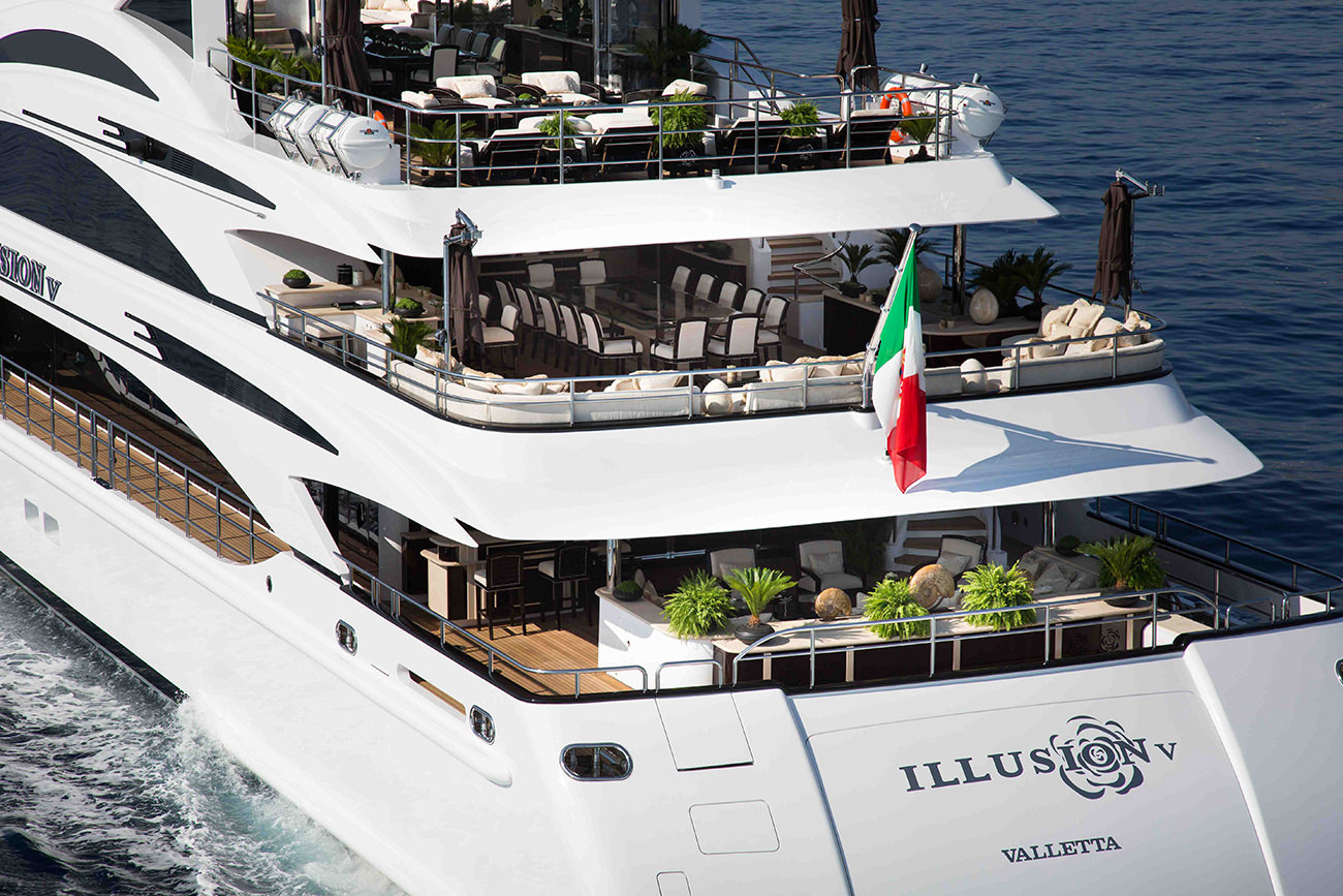 This image is featured as part of the article Luscious luxury yacht ILLUSION V available for New Year Bahamas and Caribbean charters.