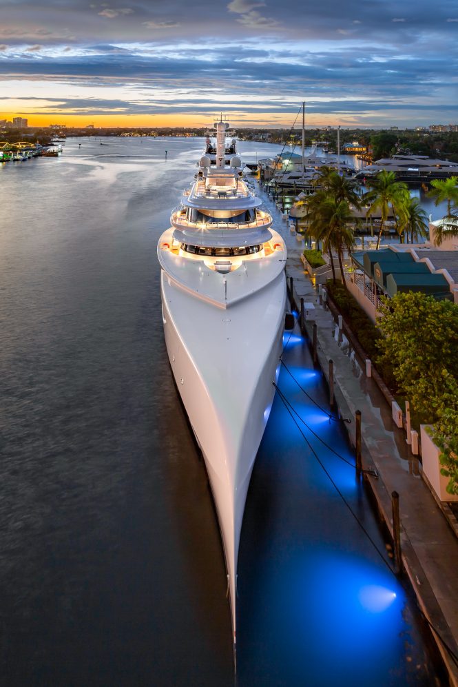 The stunning 80m/262.5ft luxury charter yacht EXCELLENCE from Abeking & Rasmussen has been photographed by drone, showing off her sleek exterior styling at sunset in tropical Fort Lauderdale, Florida before cruising up the coast to Maine.