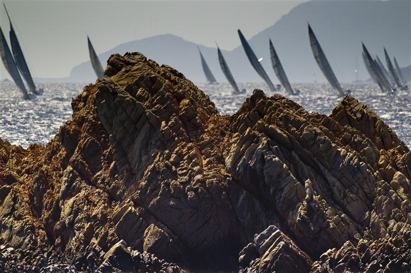 Maxi fleet charging off Porto Cervo – Photo Credit Rolex – Carlo Borlenghi