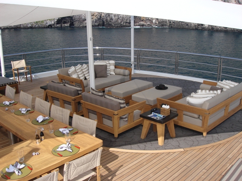 Motor yacht TV – Upper deck dining and outdoor lounging