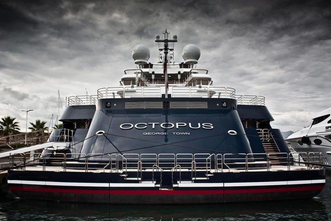 Luxury yacht OCTOPUS can currently be seen moored at the Antibes marina as she awaits a buyer.