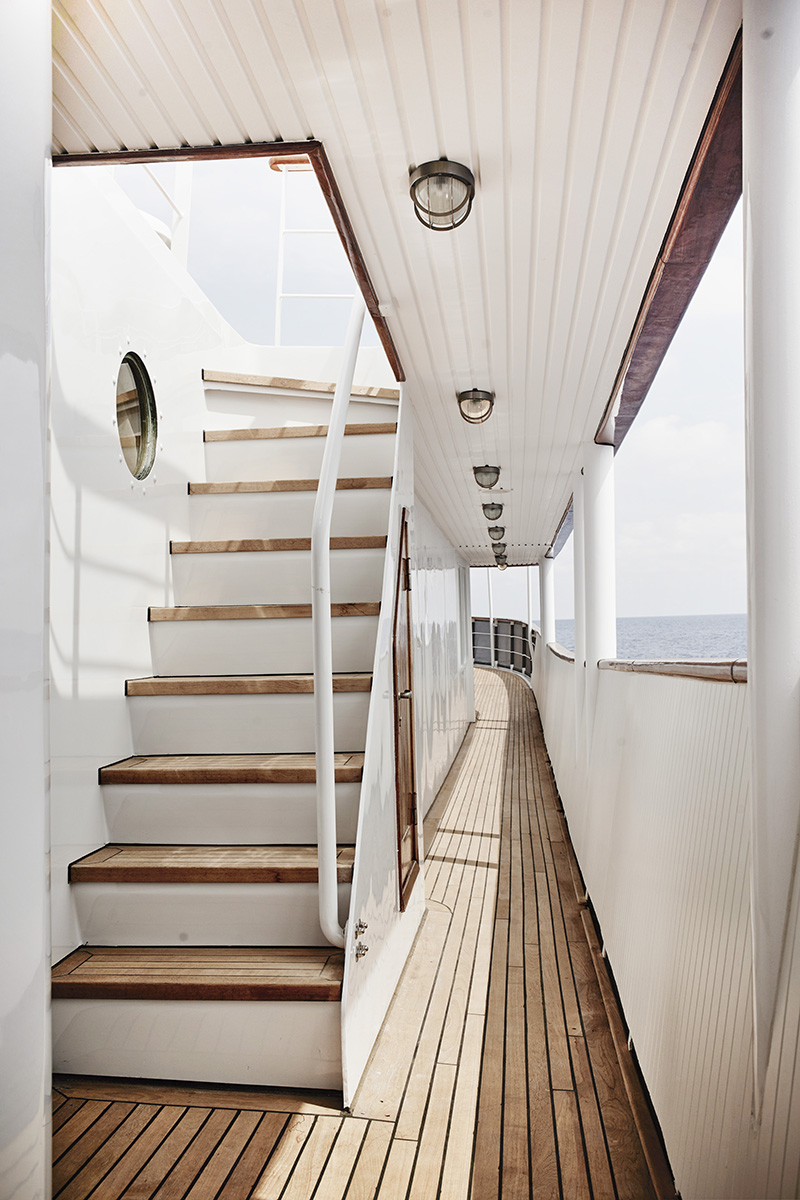 Beautifully restored decks on MENORCA superyacht – Photo credit Mare e Terra