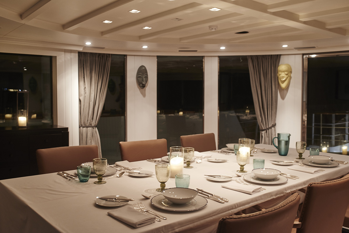 Fine dining setting aboard MENORCA – Photo credit Mare e Terra