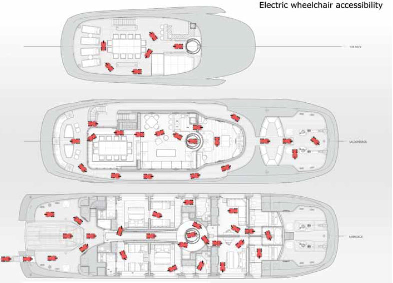 Please contact CharterWorld - the luxury yacht charter specialist - for more on superyacht news item "Electric wheelchair/scooter accessibility on the three guest decks in standard configuration".