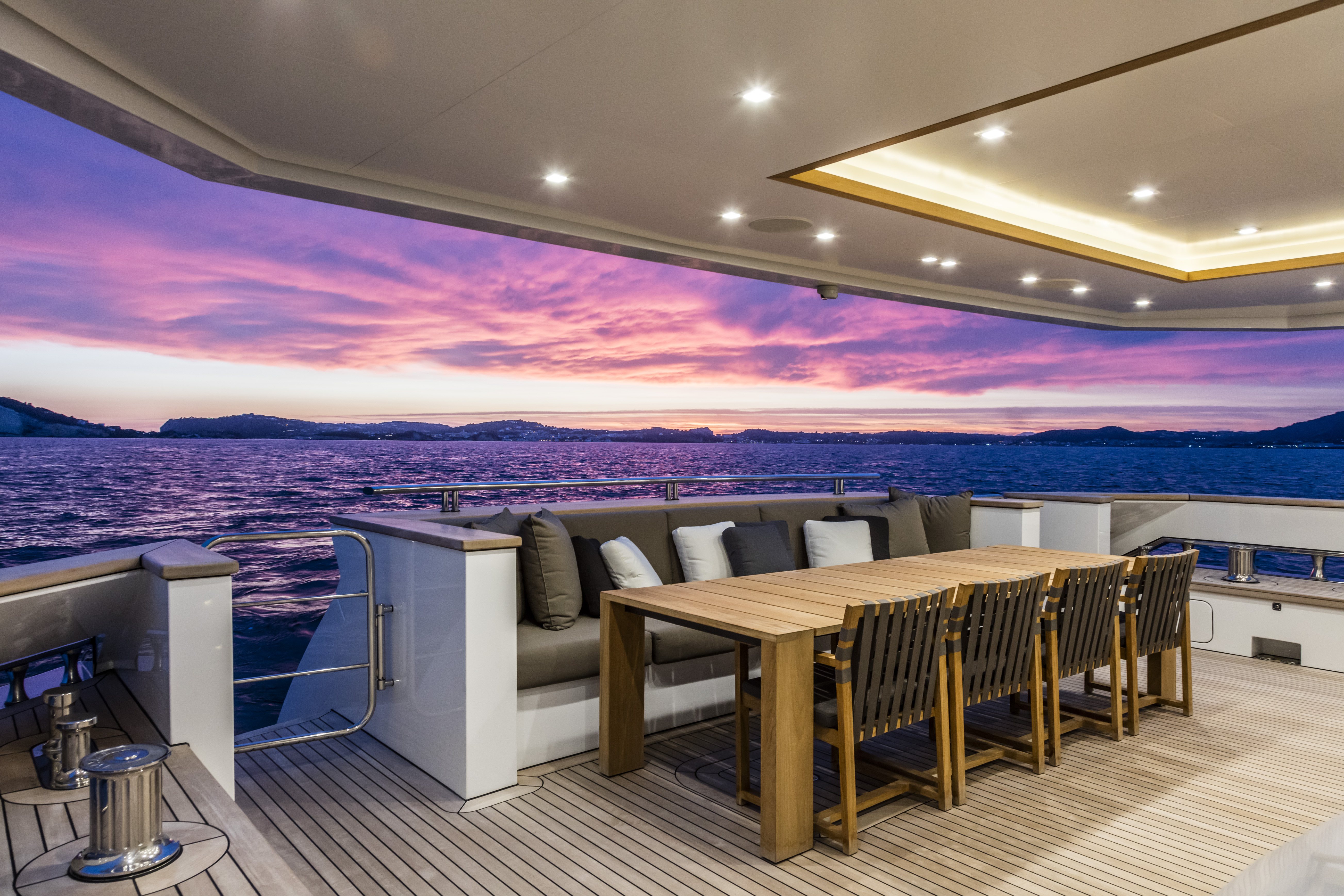This image is featured as part of the article Monaco Yacht Show 2016 to display sport hybrid M/Y Divine.