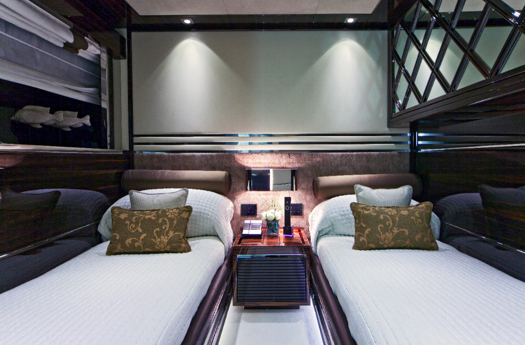 Please contact CharterWorld - the luxury yacht charter specialist - for more on superyacht news item "Motor Yacht Manifiq Twin Guest Cabin - Interior by Luca Dini Design".