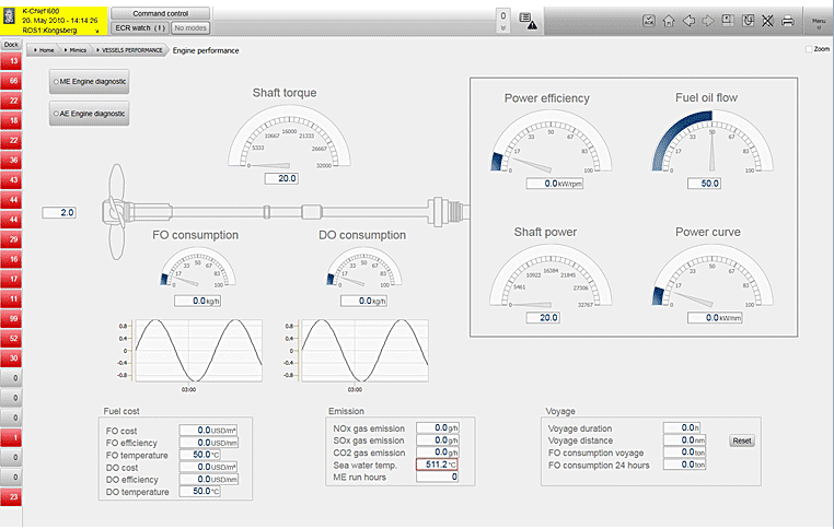 The new Fuel Saver applications can expand a K-Chief system on three levels. The first application is ‘Fuel Saver Monitoring’ for improved information and understanding of total fuel consumption. It monitors functions such as torque, fuel index, ship speed and hull efficacy and provides information in a format that enables corrective actions. The second application is ‘Fuel Saver Advisory’, which in addition to the Fuel Saver Monitoring functionality provides trim and draft optimisation. The third application is the ‘Fuel Saver Optimal Advisory’, providing optimal speed, optimal heading and optimal RPM in addition to hull fouling, propeller fouling, voyage planning, bunker cost calculation and reports.