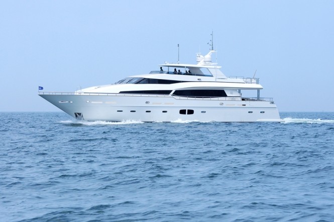 Same as the Monte Fino 76 yacht, the new Super Yacht Monte Fino 100 RPH, was designed by Humphreys Yacht Design with European Italian looks. Open fly bridge with hard top is standard with optional open fly bridge with radar arch or enclosed fly bridge / sky lounge. Like other Monte Fino custom yachts, the interior of the motor yacht Monte Fino 100 RPH can be fully customized.