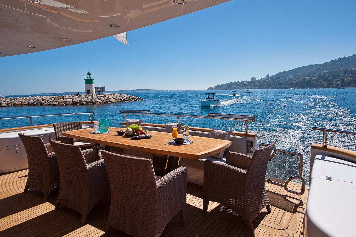 Please contact CharterWorld - the luxury yacht charter specialist - for more on superyacht news item "aft deck alfresco dining area".