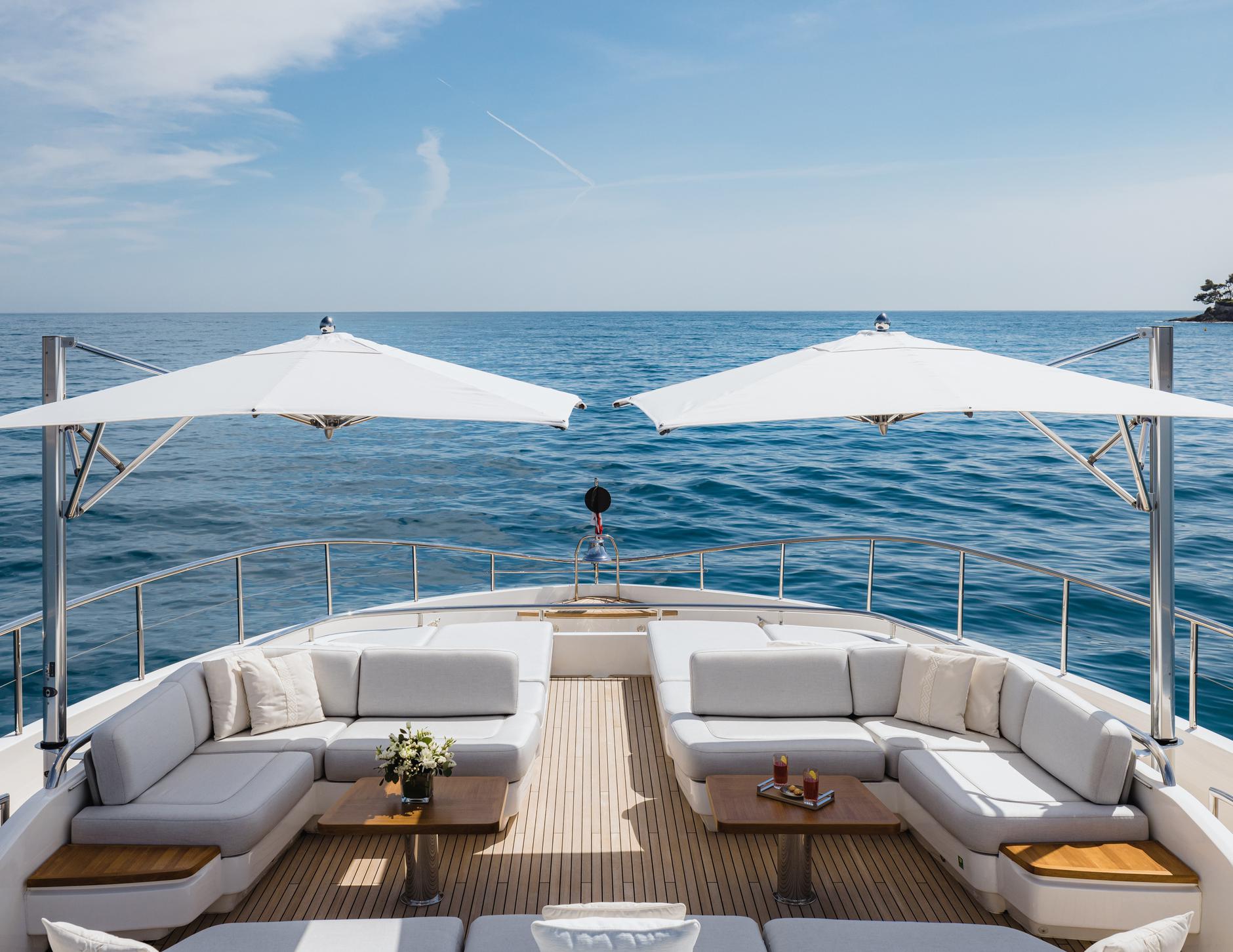 This image is featured as part of the article Motor yacht RIVIERA LIVING now available for Western Mediterranean luxury charters.