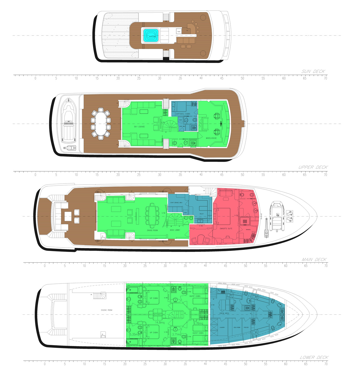 Please contact CharterWorld - the luxury yacht charter specialist - for more on superyacht news item "Yacht Unusual 35 Layout - Image courtesy of Gian Paolo Nari".