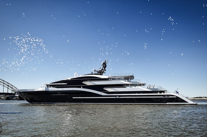 Famous yacht designers worked on the creation of another masterpiece by Oceanco. The exterior profile was penned by De Basto Design, while Nuvolari Lenard designed the interiors. The yacht features the enormous amount of glazing placed in the hull and is the first superyacht in the Netherlands to be given Lloyd’s Register Integrated Bridge System (IBS) notation and designation.