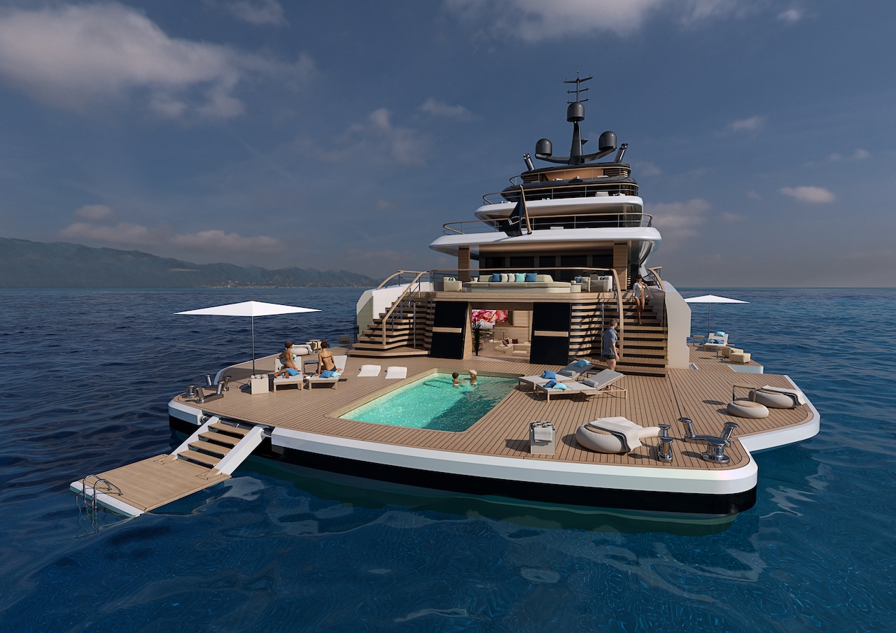 Please contact CharterWorld - the luxury yacht charter specialist - for more on superyacht news item "NAUTA 78M SLIPSTREAM - beach club - render".