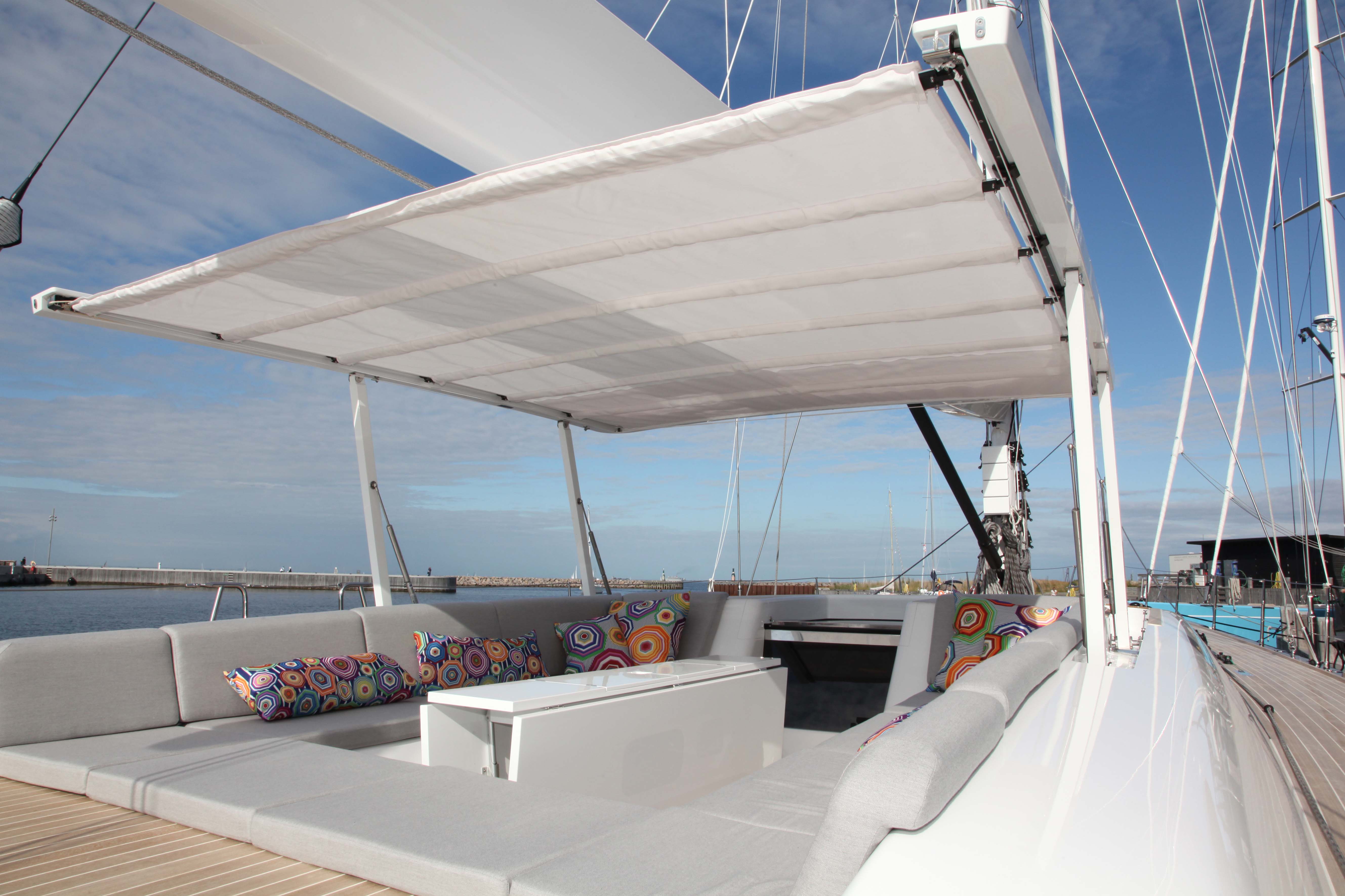 Swan 80S luxury yacht I AMSTERDAM Cockpit with bimini top Photo Credit: Per Heegaard 2012