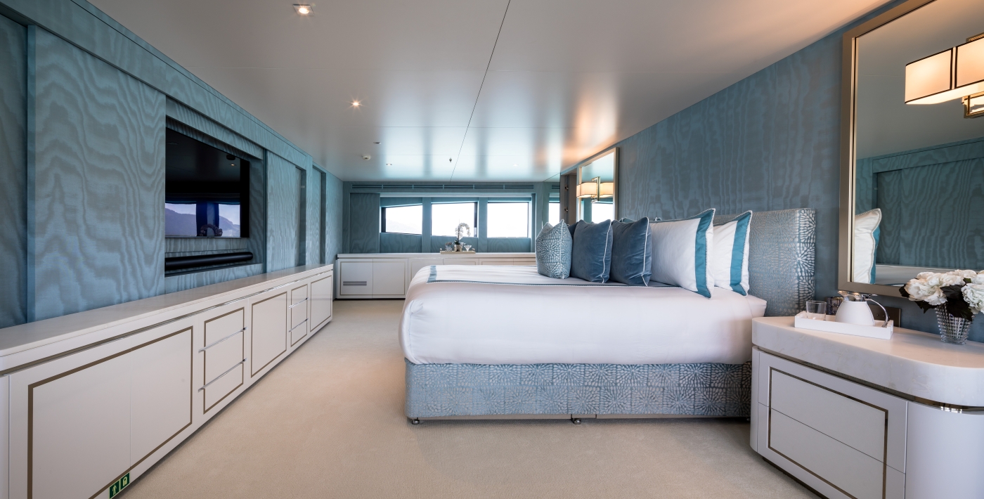 The generous interiors will comfortably sleep up to 10 guests in 5 lovely cabins, including an incredibly large owner’s suite on the main deck, and four magnificent guest cabins, all positioned on the lower deck. The vessel will be taken care of by a crew of 11.