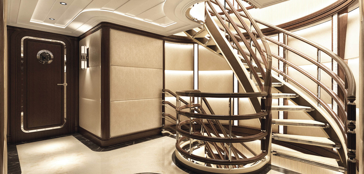 Mega yacht SOMETHING COOL – Staircase – Image credit to Dutchmegayachts