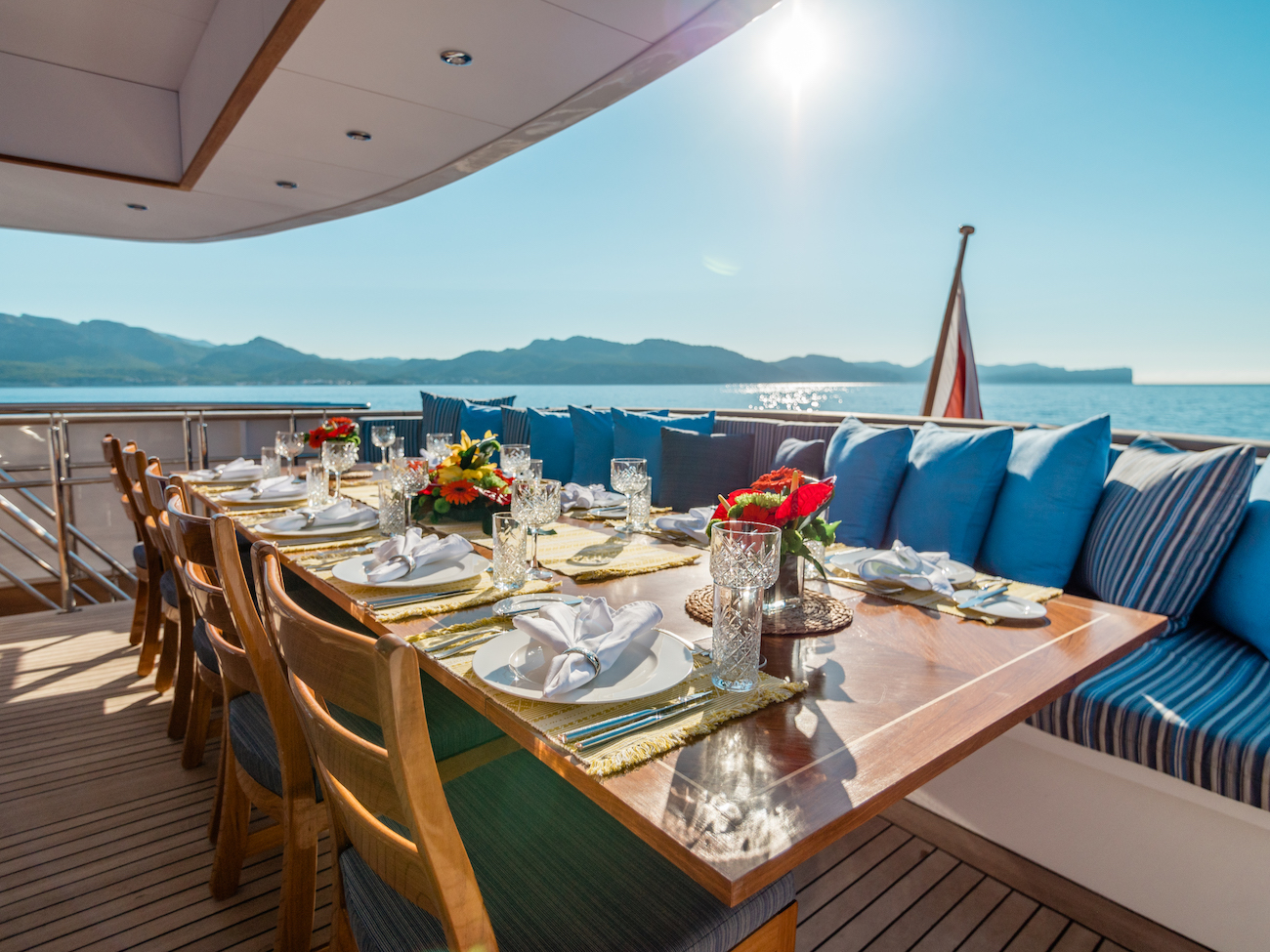 Please contact CharterWorld - the luxury yacht charter specialist - for more on superyacht news item "Main deck dining set up al fresco".