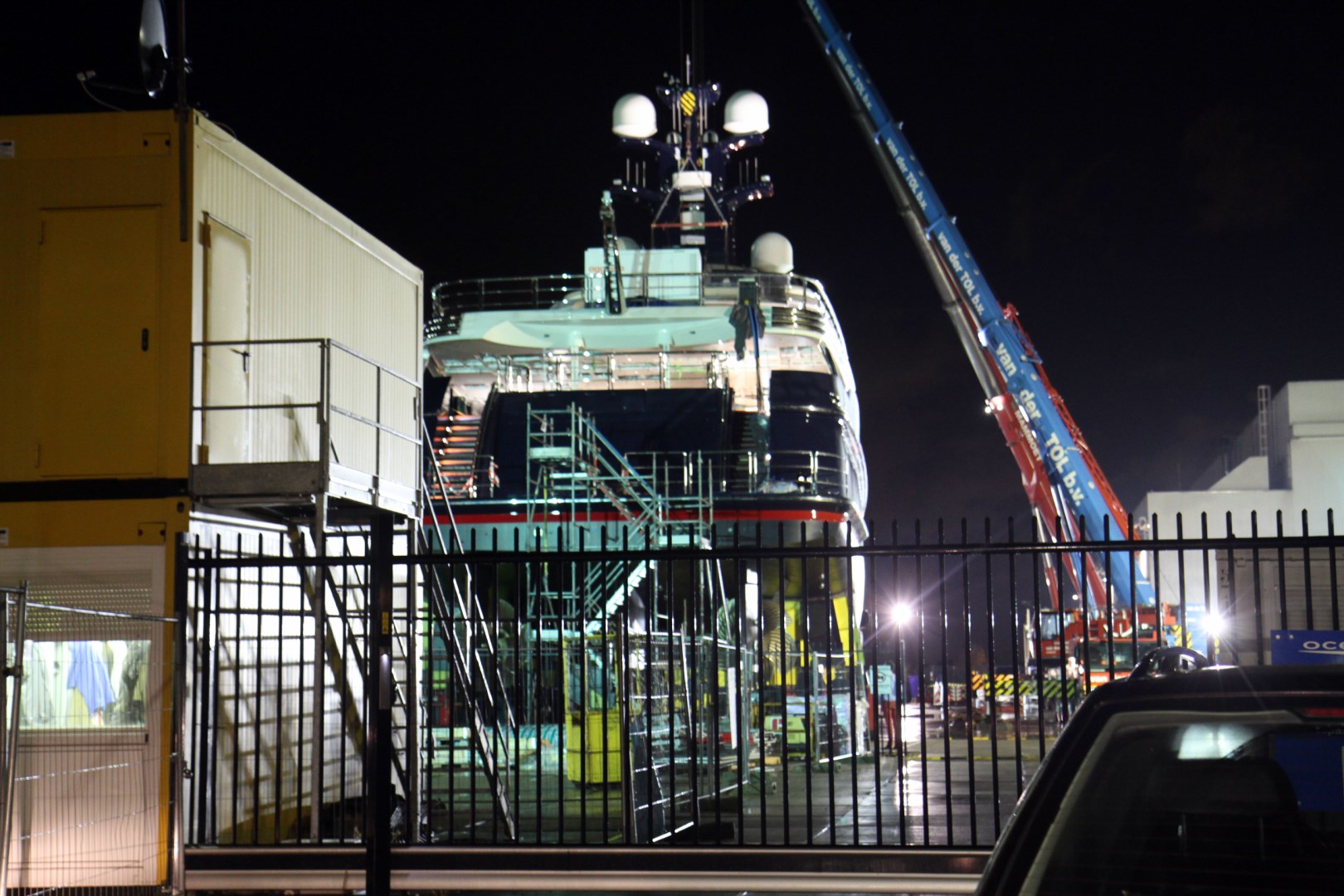 This image is featured as part of the article Oceanco motor yacht Project PA164 (Y709) leaves her shed.
