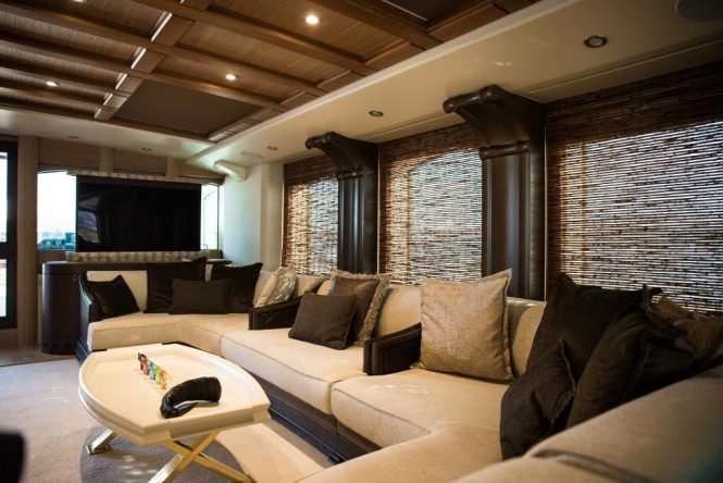 Above deck, there is a spacious cockpit designed for all-day outdoor living and alfresco dining, and there is a nearby bar for refreshments plus an integrated TV for catching up on the latest films, news and sport even when outside. Towards the stern guests will find a space for sunbathing with numerous sunpads, while on the foredeck there is a quiet spot for contemplation on the sofa or deckchairs while marvelling at the sunset in such destinations as Croatia or Montenegro.