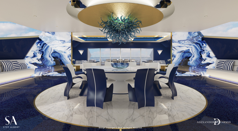 This image is featured as part of the article Opulent interior design for Striking 87m Mega Yacht IWANA by Alex McDiarmid and Stef-Albert.