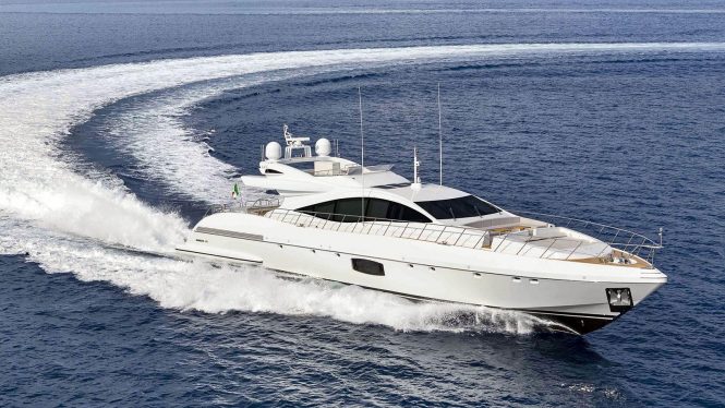 The MANGUSTA 110 is ideally suited to cruising in Florida and the Bahamas, offering a shallow draft of 1.7m/5.6ft and two powerful MTU 16V 2000 M96L engines for island hopping at a top speed of over 33 knots.
