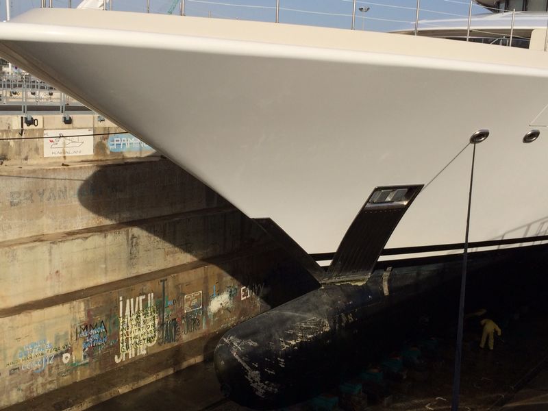 85-metre Mega yacht in the dry-dock of Palumbo Marseille Superyachts ITM