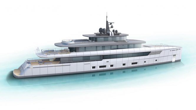 The planned 56m/184ft design consists of three decks with five staterooms and accommodation for up to nine crew. The design follows on from predecessors M/Y EXUMA (50m/164ft), M/Y GALILEO G (55m/180ft) and M/Y GRACE E (73m/240ft), all of which were designed by the renowned naval architect Philippe Briand.