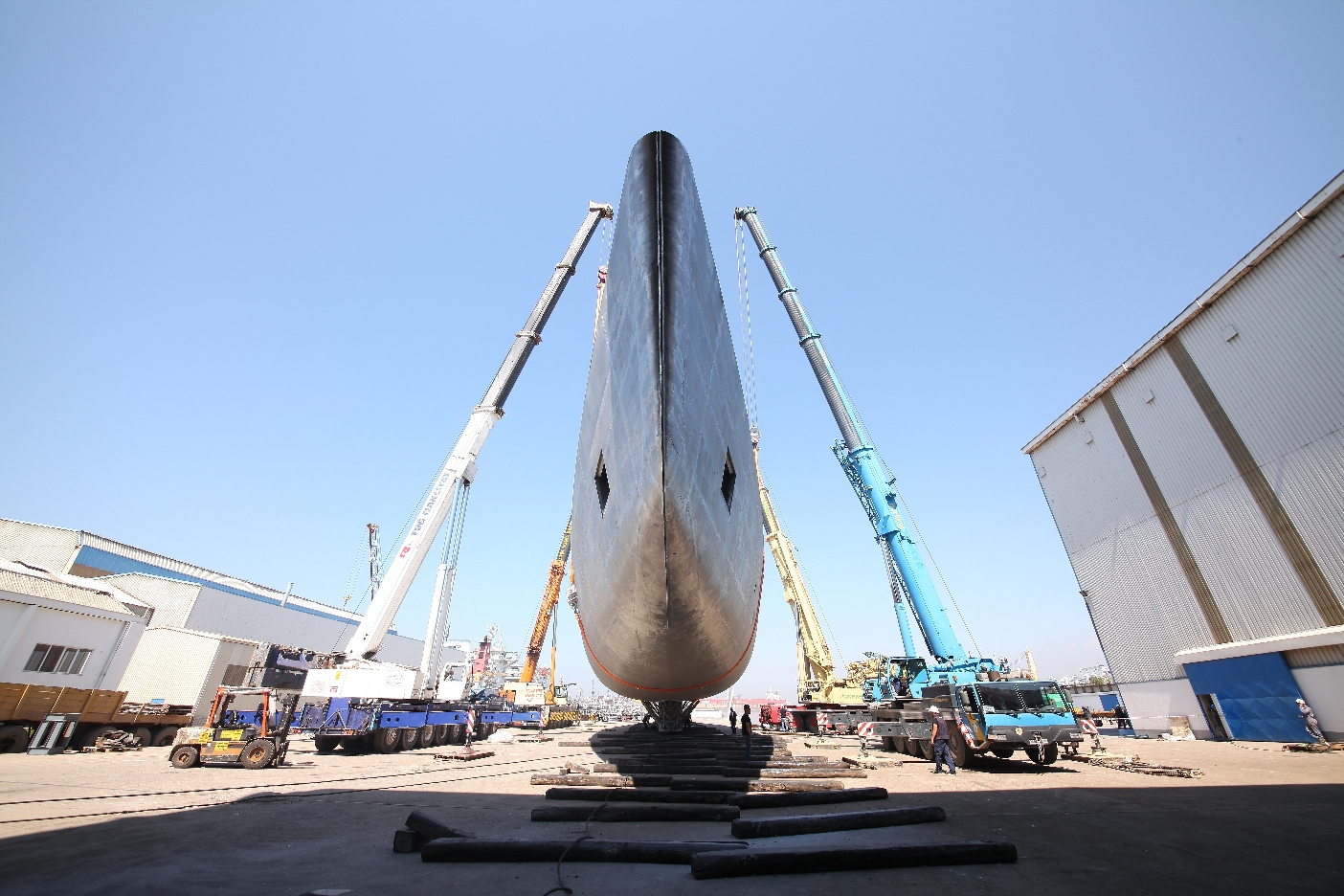 This image is featured as part of the article Perini Navi Hull C.2227 SYBARIS superyacht’s hull turned.