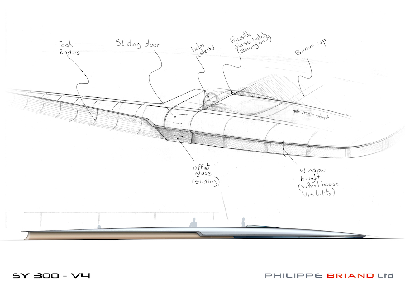 Please contact CharterWorld - the luxury yacht charter specialist - for more on superyacht news item "SY300 roof sketch by Philippe Briand".