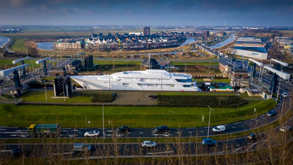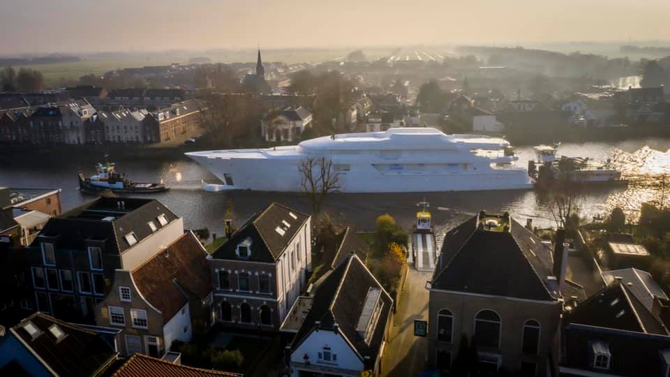 Feadship released the first photos of their in-build motor yacht PROJECT 707: the yacht is on the move to the shipyard’s facility in Aalsmeer for outfitting and finishing.