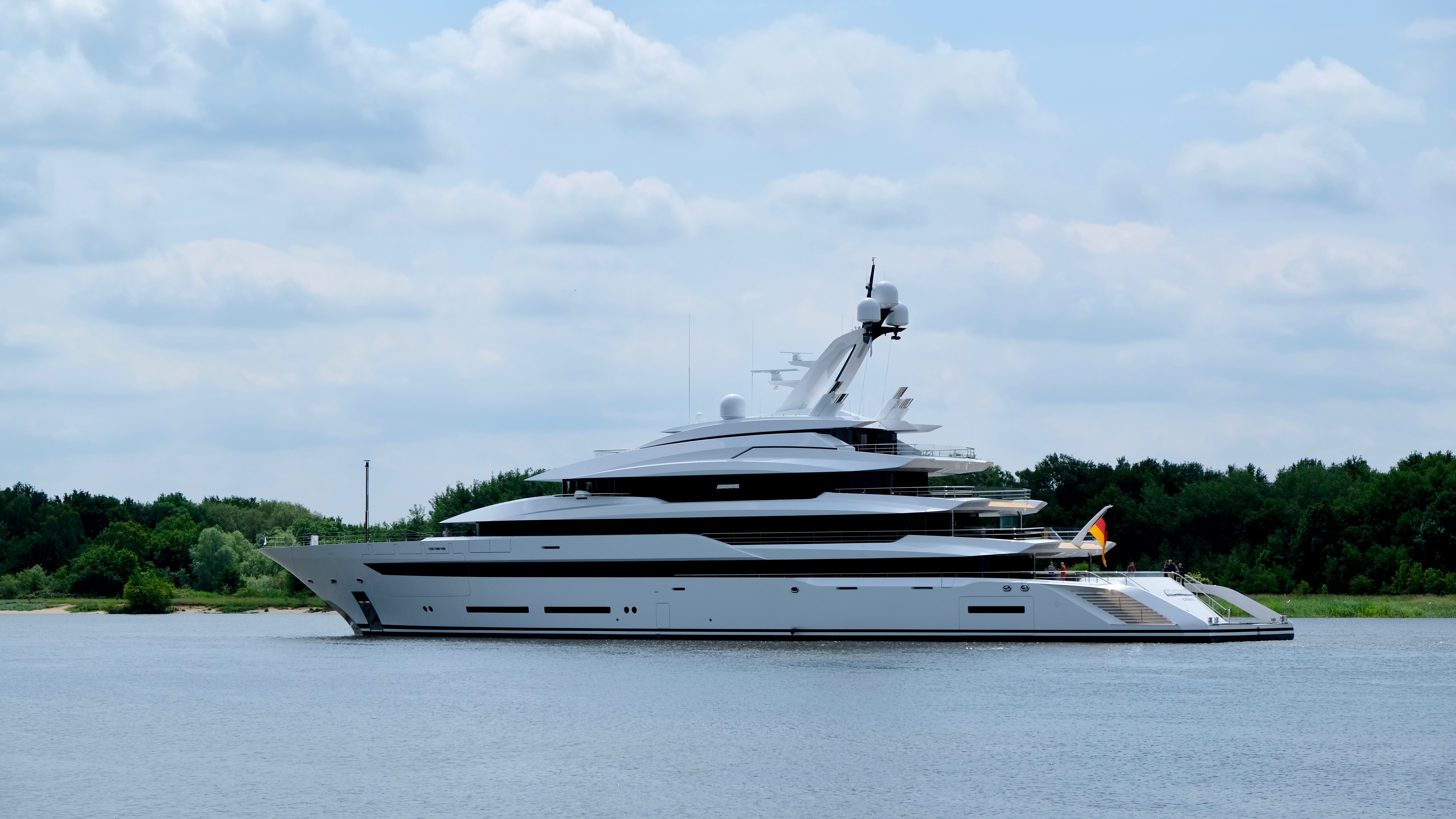 Outstanding 60m Motor Yacht KAISER by Abeking & Rasmussen at her home yard for maintenance