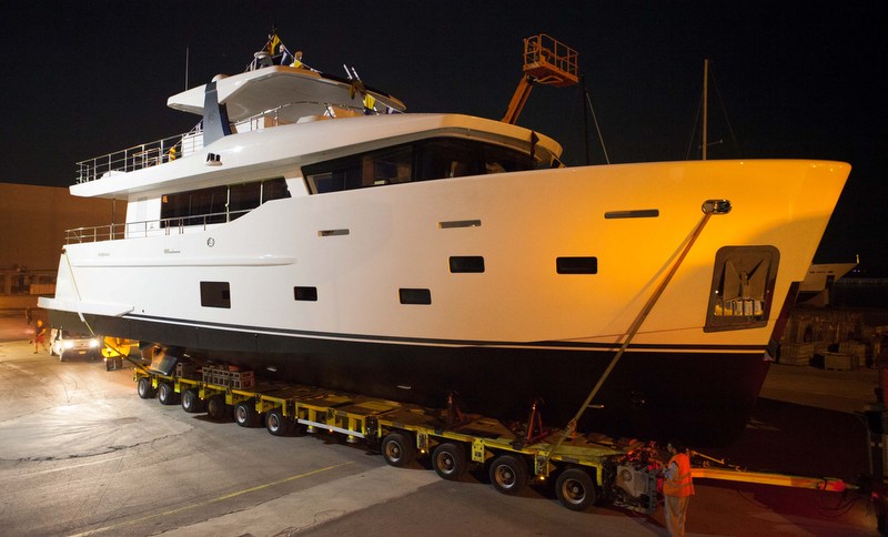This image is featured as part of the article Photos from night transport of first CdM Nauta Air 86′ motor yacht YOLO.