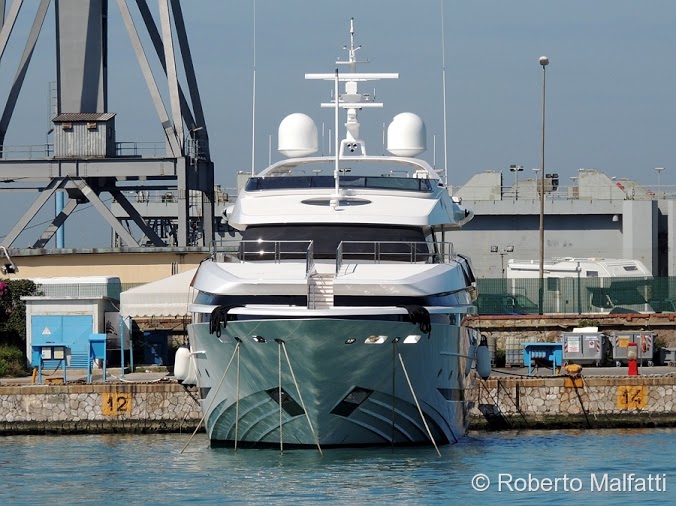 46m Sanlorenzo ACHILLES yacht leaving port of Livorno