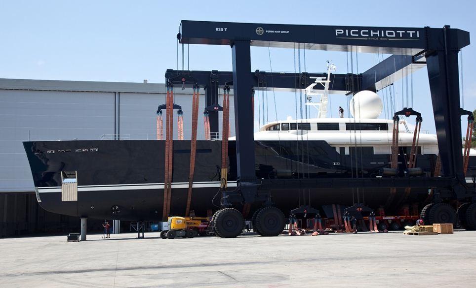 Superyacht Galileo G ready to launch at Picchiotti – Photo Credit Giuliano Sargentini