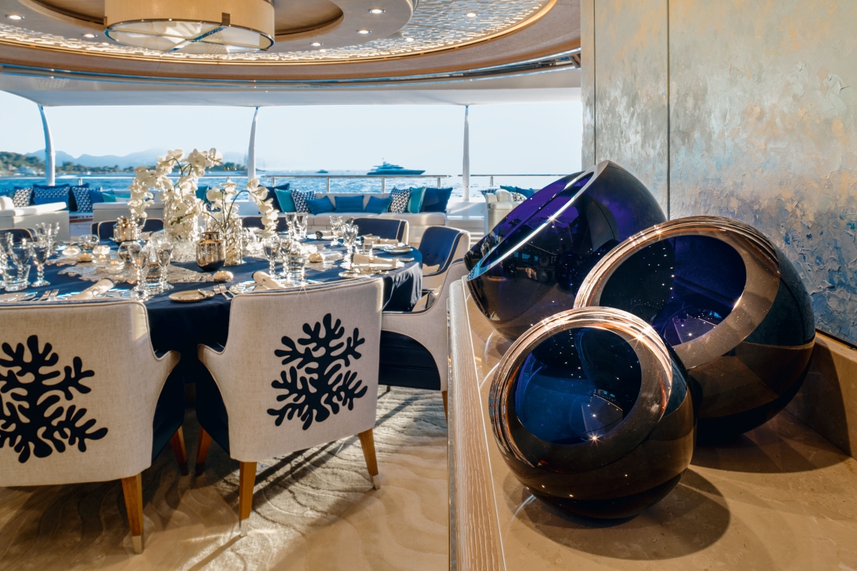 Motor yacht CLOUD 9 – Formal dining area detailing