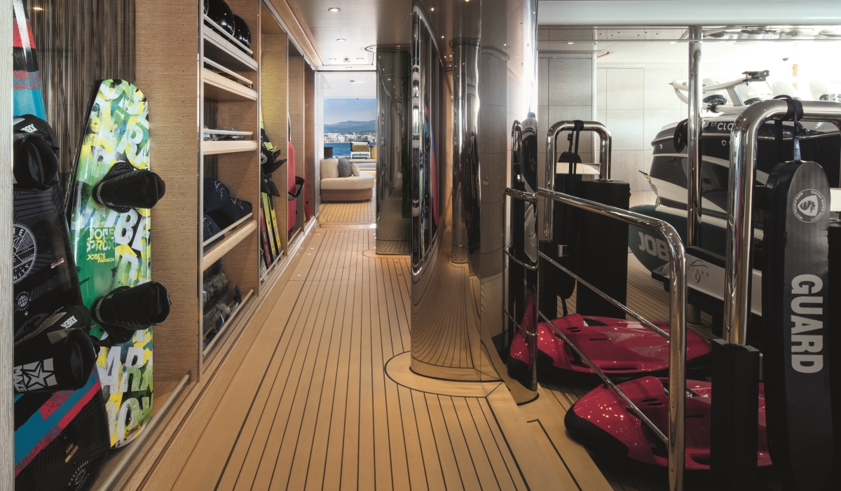 Superyacht CLOUD 9 – Lower deck tender garage and water toys storage