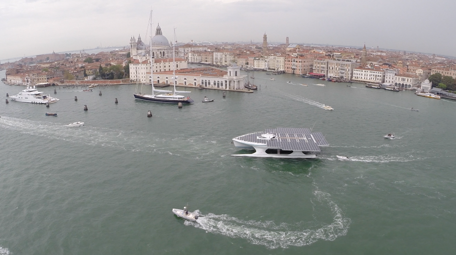 Aerial view of PlanetSolar in Venice © PlanetSolar