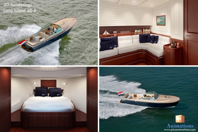 Currently the use of renderings is quiet common, though there are vast differences in quality. The use of animation is getting more and more popular. The benefit of 3D is that the possibilities are endless; unfortunately not everyone realises this. With realistic visuals and distinctive ideas, each design can appeal to its target group and lead to direct sales. A good example is one of the latest nautical projects for the Long Island shipyard. “When the drawings for our new model arrived from the architect, PlusAnimations offered us the possibility to visualize these. This was the solution for immediately being able to start the marketing campaign. The result was a beautifully rendered 3D image that was almost impossible to distinguish from a photo. During the HISWA boat show in Amsterdam where direct sales were achieved, the value of these kinds of visuals was confirmed to us!” says Onno Laarhoven – director Long Island Shipyard.