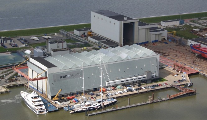 ICON Yachts Bv is located in the picturesque north coast of Holland with unrestricted open water access.  The yard boasts a 150m long, 50m wide and 10m deep fully covered and heated dry dock served by two 100 ton fully synchronized overhead cranes.