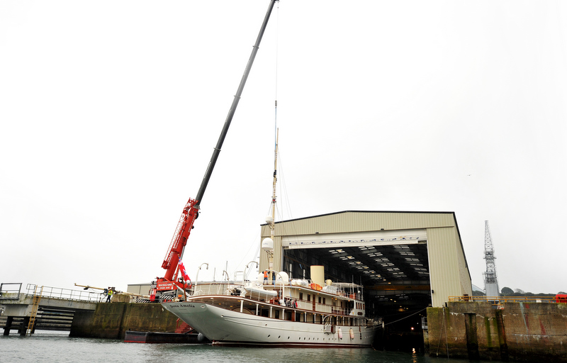 This image is featured as part of the article The refit of the 71m charter yacht Dona Amélia (ex Haida G) at Pendennis successfully completed.
