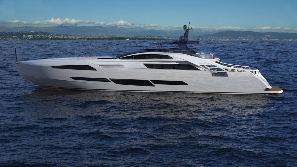 This image is featured as part of the article New Renderings and Video of Striking and Sporty Pershing 140 Yacht.