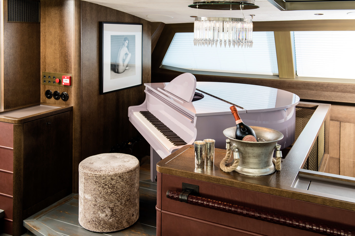 Please contact CharterWorld - the luxury yacht charter specialist - for more on superyacht news item "The upper salon baby grand piano aboard sailing yacht PINK GIN VI".