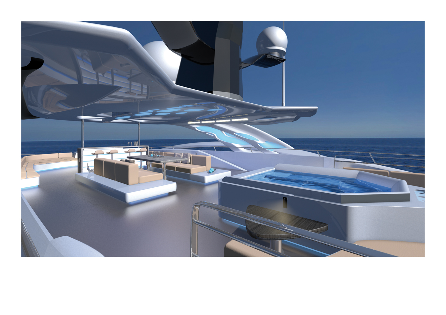 Exterior spaces on board of superyacht Proxima – rendering and design by RF Yachts