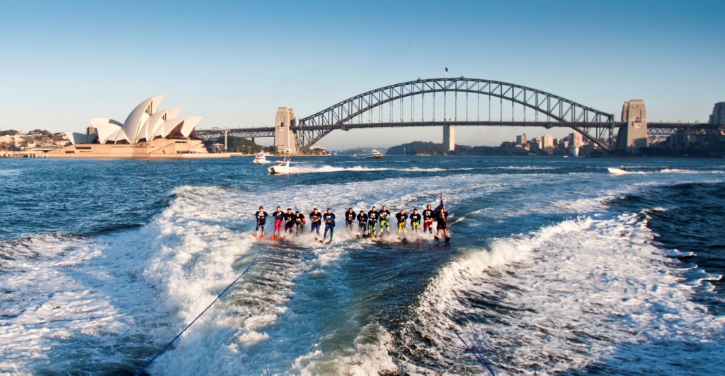 Please contact CharterWorld - the luxury yacht charter specialist - for more on superyacht news item "Riviera 61 series II Enclosed Flybridge luxury motor yacht and elite water skiers in Sydney Harbour".