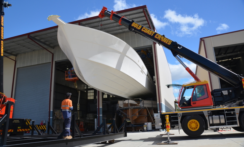 It was a very delicate operation as the 75 hull was lifted from the mould by two 50 tonne cranes
