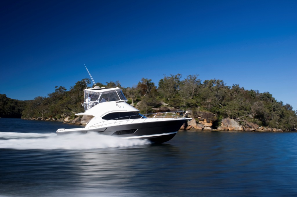 Riviera 43 Open Flybridge with IPS propulsion gives an exhilarating performance with outstanding economy – R Marine South Australia has one 43 in stock for pre-Christmas delivery