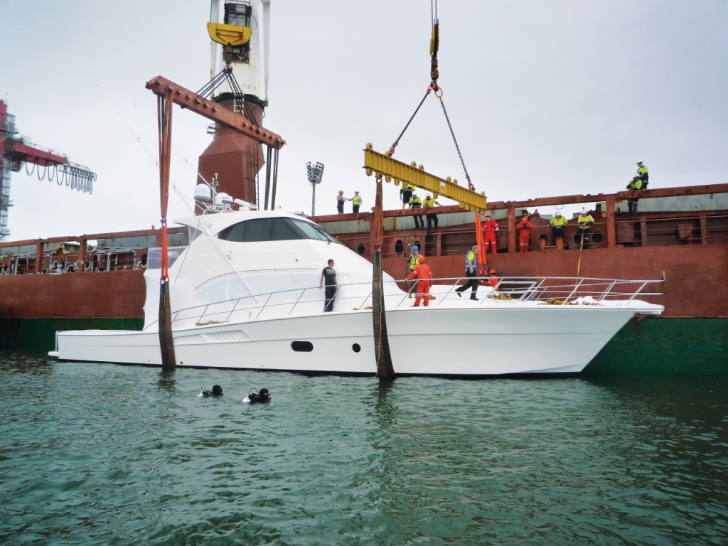This image is featured as part of the article Riviera Yachts transports the first 75 Enclosed Flybridge yacht to her new owners in New Zealand.