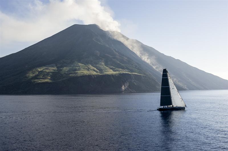 Niklas Zennström’s RÁN (SWE) rounding Stromboli – Photo by Rolex Kurt Arrigo