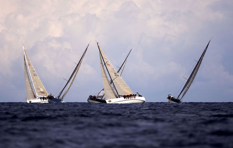 2006 Rolex Swan Cup – The Swan 45 fleet cross tacking upwind