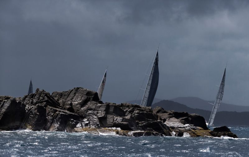 Rain squall during Day 2 Coastal Race. Rolex Swan Cup Caribbean 2015. © Rolex/Carlo Borlenghi